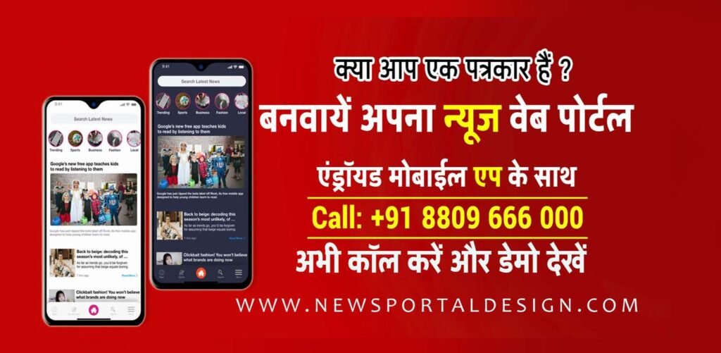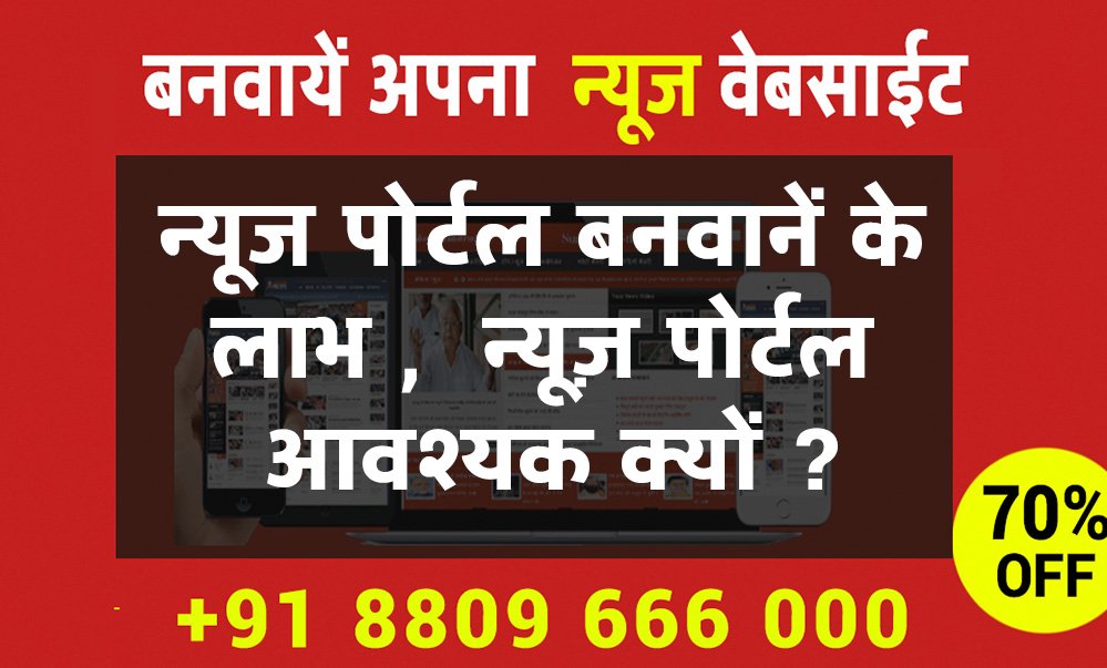 बनवाएं अपना न्यूज़ पोर्टल और न्यूज़ मोबाइल ऍप. भारत की सबसे भरोसेमंद न्यूज़ कंसल्टेंट्स कंपनी के साथ जुड़े .जानिए कैसे कमाए न्यूज़ पोर्टल से पैसे .क्या सावधानी बरतनी चाहिए न्यूज़ पोर्टल बनवाने से पहले.जानिए डिजिटल न्यूज़ से जुडी हर सवाल का जवाब